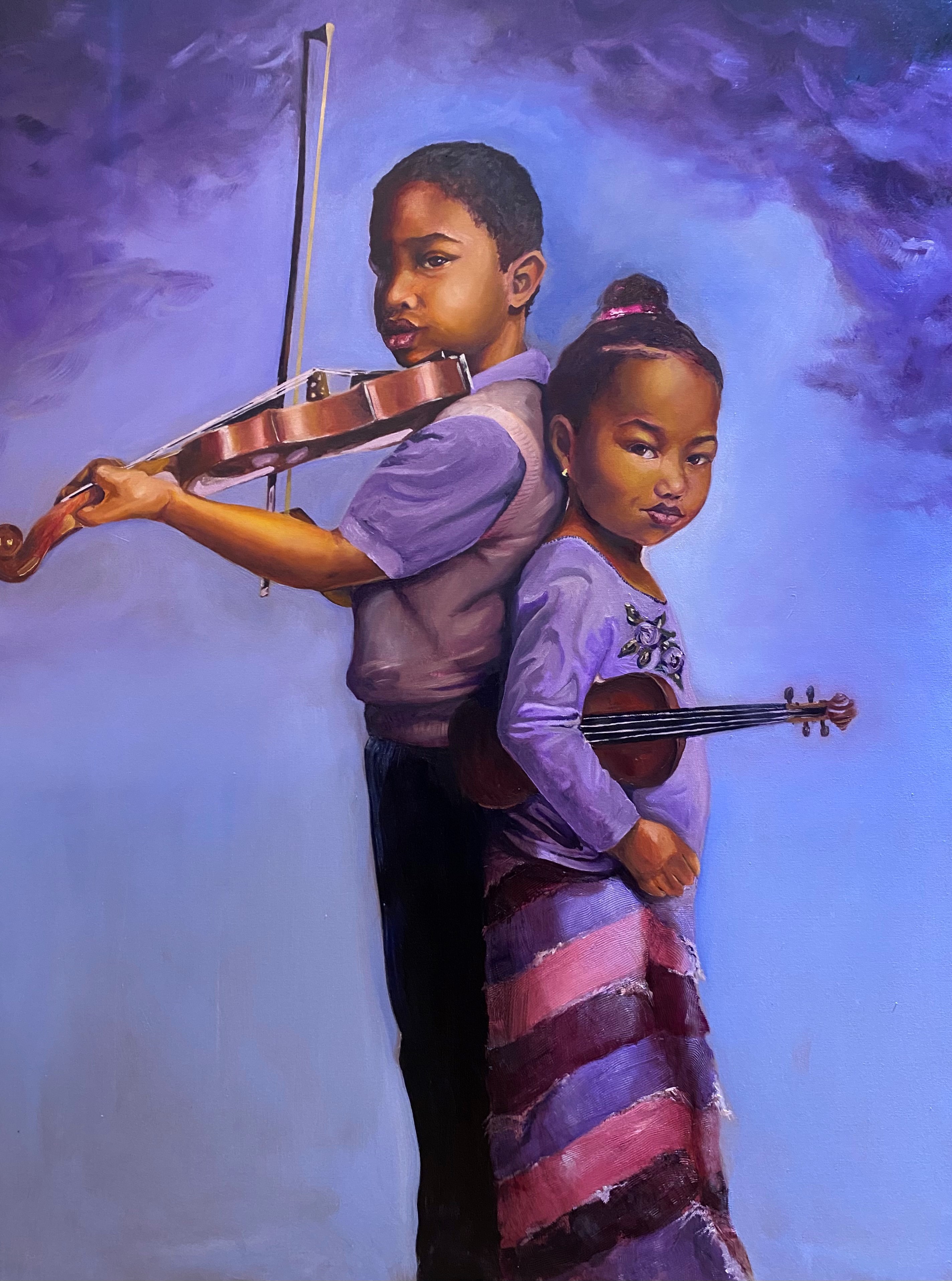 Timothy J. Simmons’ work is rooted in social commentary and the pursuit of authentic representation. His paintings challenge negative stereotypes by presenting African American families in everyday, “conventional” contexts playing music, celebrating milestones, and sharing quiet moments. Through vibrant compositions and meticulous craftsmanship, Simmons creates imagery that emphasizes dignity, love, and cultural richness. His approach seeks to foster open dialogue on
